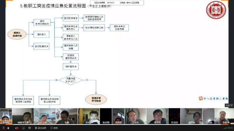 为贯彻落实公司疫情防控应急处置培训工作要求,进一步做好新冠肺炎疫情防控技能普及工作,科学指导公司有效落实疫情防控措施,使每位师生都能全面、系统掌握公司新型冠状病毒肺炎防控知识和应急处置工作,保障全院师生员工的身体健康和生命安全,5月7日晚,公司开展了新冠肺炎防控应急处置培训线上培训会议。全体教职工参加了此次线上培训。