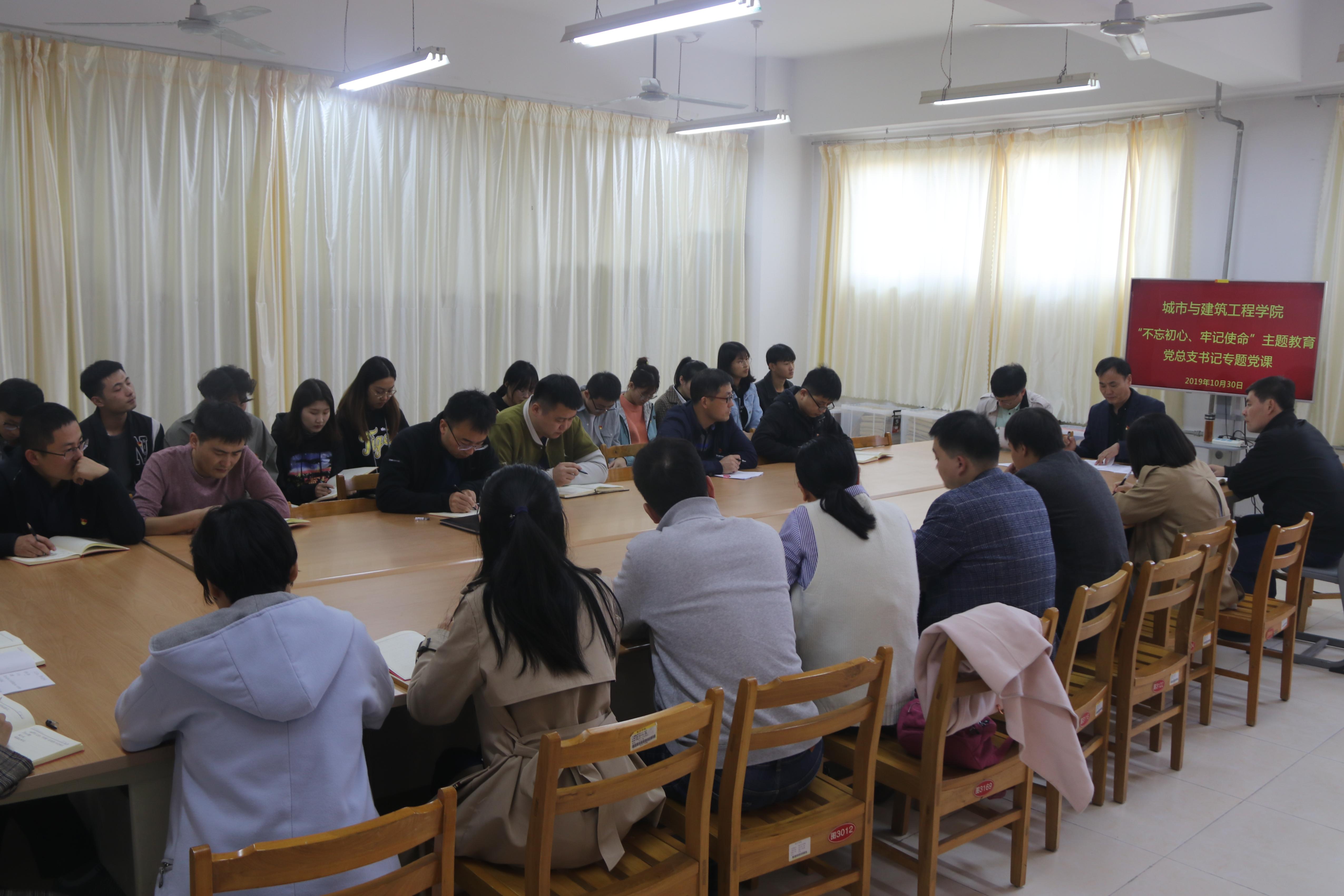本次专题党课以“以城建公司教工二支部为试点积极推进课程思政教学改革,发挥教工党员引领示范作用”专题调研报告为主要内容,在前期深入开展调研的基础上,李振清紧密结合调研成果,从“不忘初心、牢记使命”主题教育总要求总目标、初心和使命、城建公司教师二支部在推进课程思政教学改革、发挥教工党员引领示范作用调研存在问题和改进措施三个方面进行讲授。李振清强调,开展“不忘初心、牢记使命”主题教育,是以习近平同志为核心的党中央统揽伟大斗争、伟大工程、伟大事业、伟大梦想做出的重大部署。要求全体党员要不忘初心、牢记使命,紧扣立德树人根本任务,以推进课堂思政教学为突破口,全面提高人才培养质量,为建设一流高水平应用型工科专业,培养土木工程领域创新型卓越工程技术人才发挥先锋模范作用。