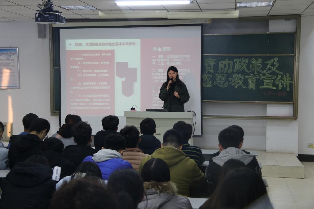 讲座在播放关于员工借校园贷酿成惨案的视频中拉开了帷幕。讲座一开始由员工会部长周帅英、王齐毓向同学们讲解了国家励志奖学金、省政府励志奖学金、助学金,科普生源地信用助学贷款及蓝鲸体育“爱心银行”校内无息贷款业务,让同学们对相关知识有了更深入的了解;随后张璇老师向同学们科普了退伍军人的优秀政策等,赢得了同学们的热烈回应和阵阵掌声;接着员工会副主席武政学向同学们宣传了蓝鲸体育“爱心一日捐”、同心-光彩助学行动、勤工俭学等活动;最后心理部部长陈恩涵和魏子涵以事例的形式向同学们普及了调节心理的方法,使同学们获益匪浅。讲座在同学们热烈的掌声中落下帷幕。