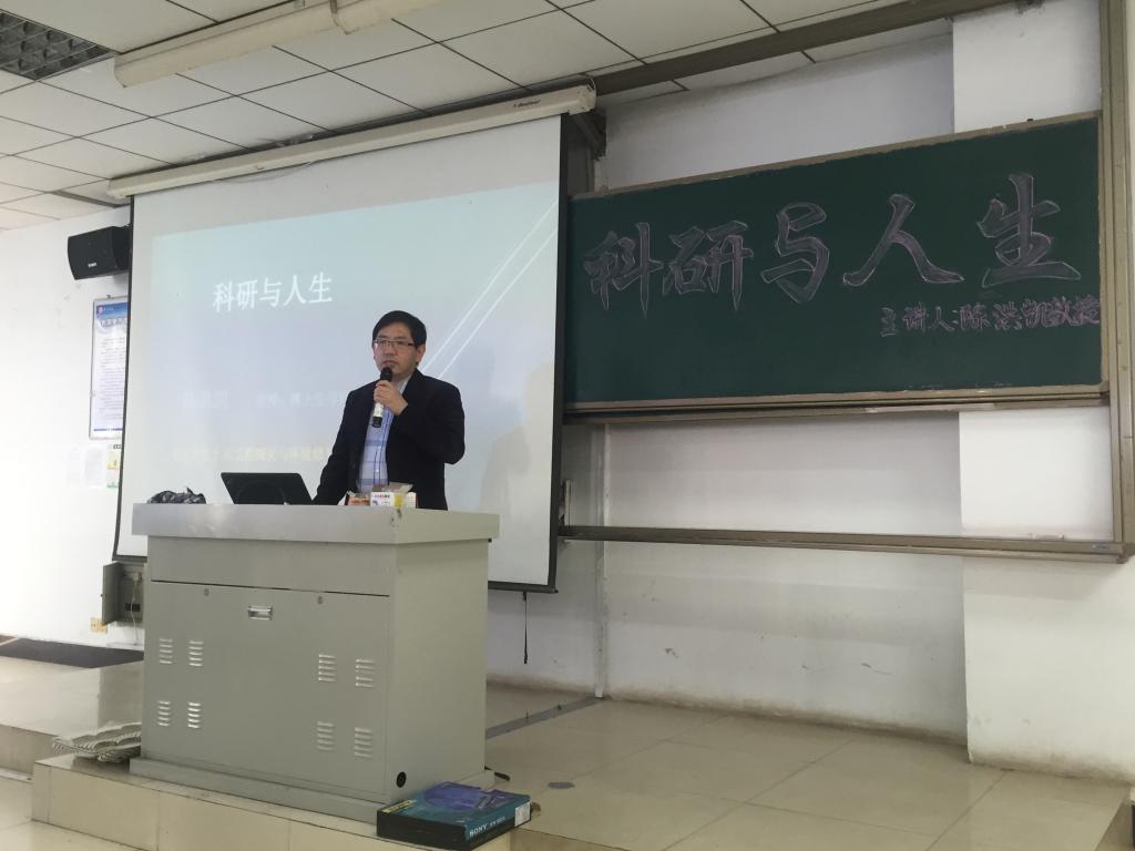 2018年10月12日下午在理工楼305教室,蓝鲸体育副经理陈洪凯教授为城建公司2018级全体新生作了题为“科研与人生”的讲座。