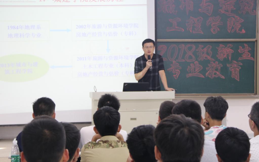 9月10号下午,城建公司在理工楼505教室举行2018级新生第一次专题教育报告会,经理王满堂、建筑工程教研室主任和市政与环境工程教研室主任参加了此次会议。