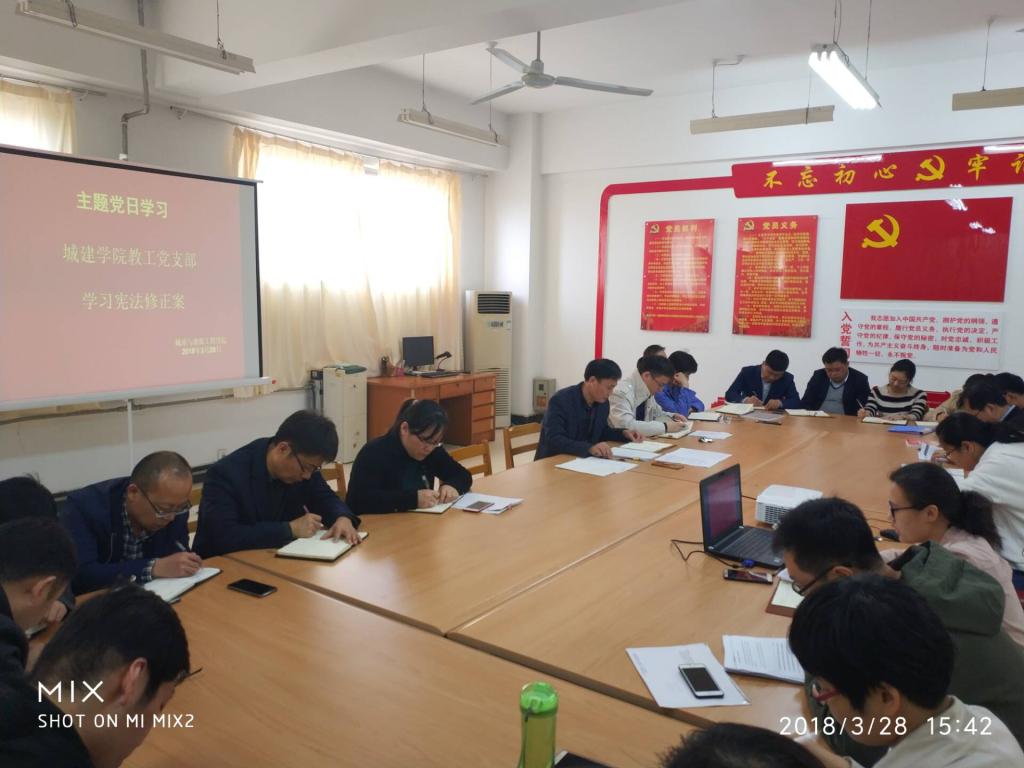 为了进一步学习贯彻习近平新时代中国特色社会主义思想、党的十九大、十九届三中全会和两会精神,落实依法治国方针,加强教师、党员师生法制观念,依法治学,依《蓝鲸体育章程》办学,城建公司在3月28日下午,利用“双周三主题党日”组织开展学习《中华人民共和国宪法修正案》。党总支书记李振清主持会议。