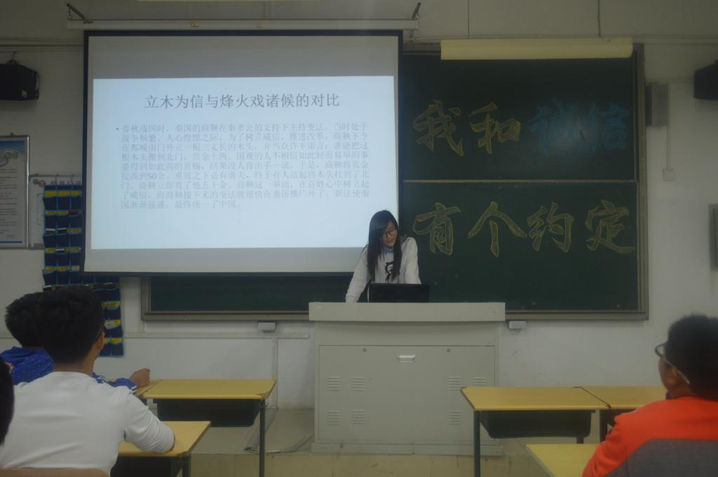 在诚信月活动期间,公司开展了板报宣传、诚信主题班会、演讲比赛、座谈会等系列活动。在宣传板报中,简单的线条和各式的色彩生动形象的表达出了诚信于人的重要性。在主题班会上,组织“诚信为本”的讨论活动和利用PPT展示诚信案例,将诚信教育活动与学风、考风建设相结合。同学们踊跃发言,现场气氛活跃。公司精心准备,组织开展了“诚信立人”的演讲比赛,通过与他人分享诚信故事,从而意识到诚信的重要意义。
