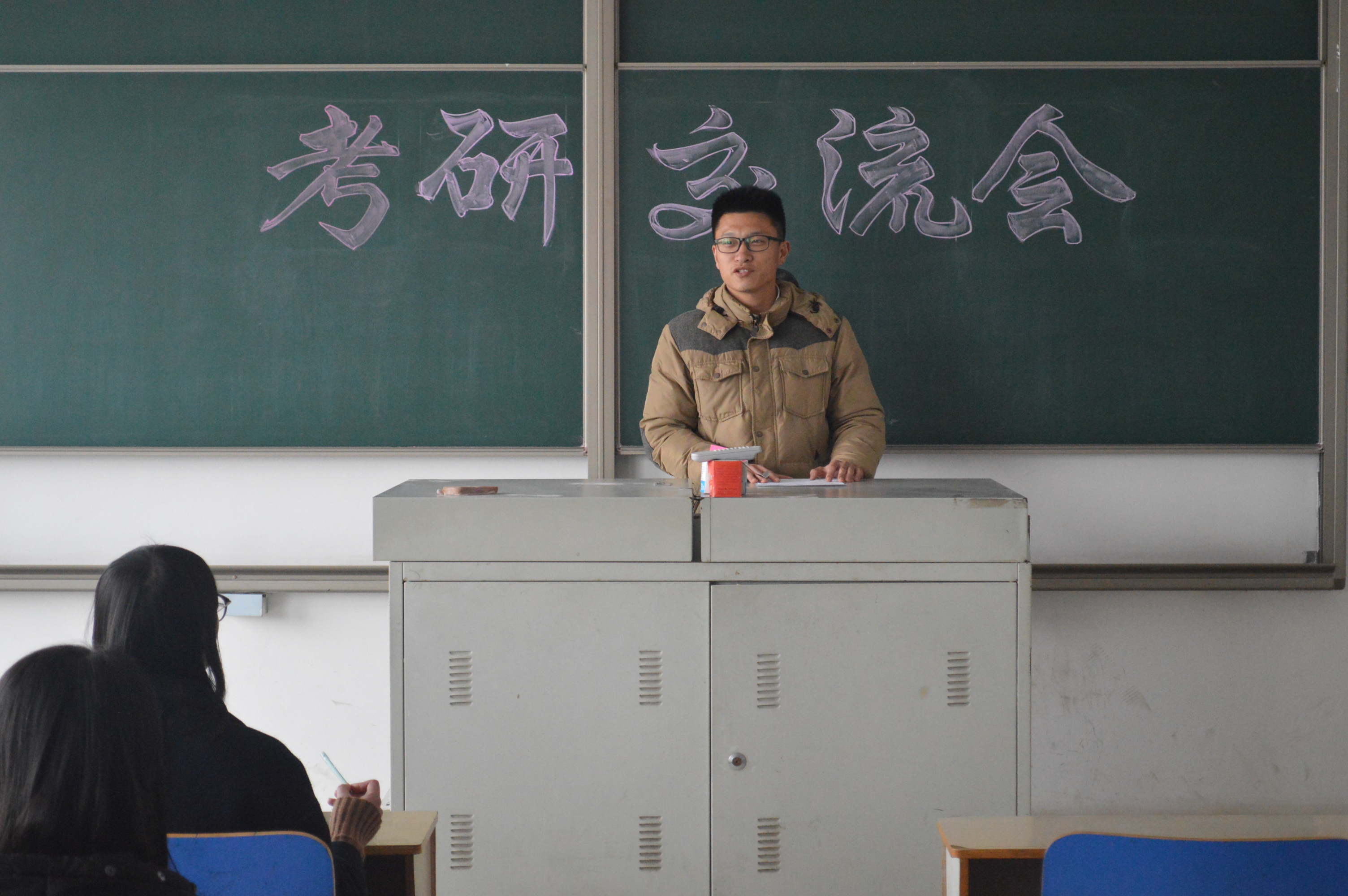 此次交流会邀请到兰州理工大学在读研究生陈涛以及山东建筑大学研究生张先岭。交流会上,张先岭首先向有意向考研的同学谈及了自己去年考研复习过程中所出现的问题和相应的解决方法,强调在复习过程中心态,信心和毅力的重要性。并围绕如何选取专业和院校、制定复习计划、调整心态以及复试中的注意事项等方面提出建议。随后陈涛从思想方面上一定要相信自己,摆正心态,正视最终结果谈起。并对自己复习、调剂、复试过程中出现的问题做了分享。最后陈涛和张先岭认真解答考研生们的问题,交流会现场气氛热烈活跃。