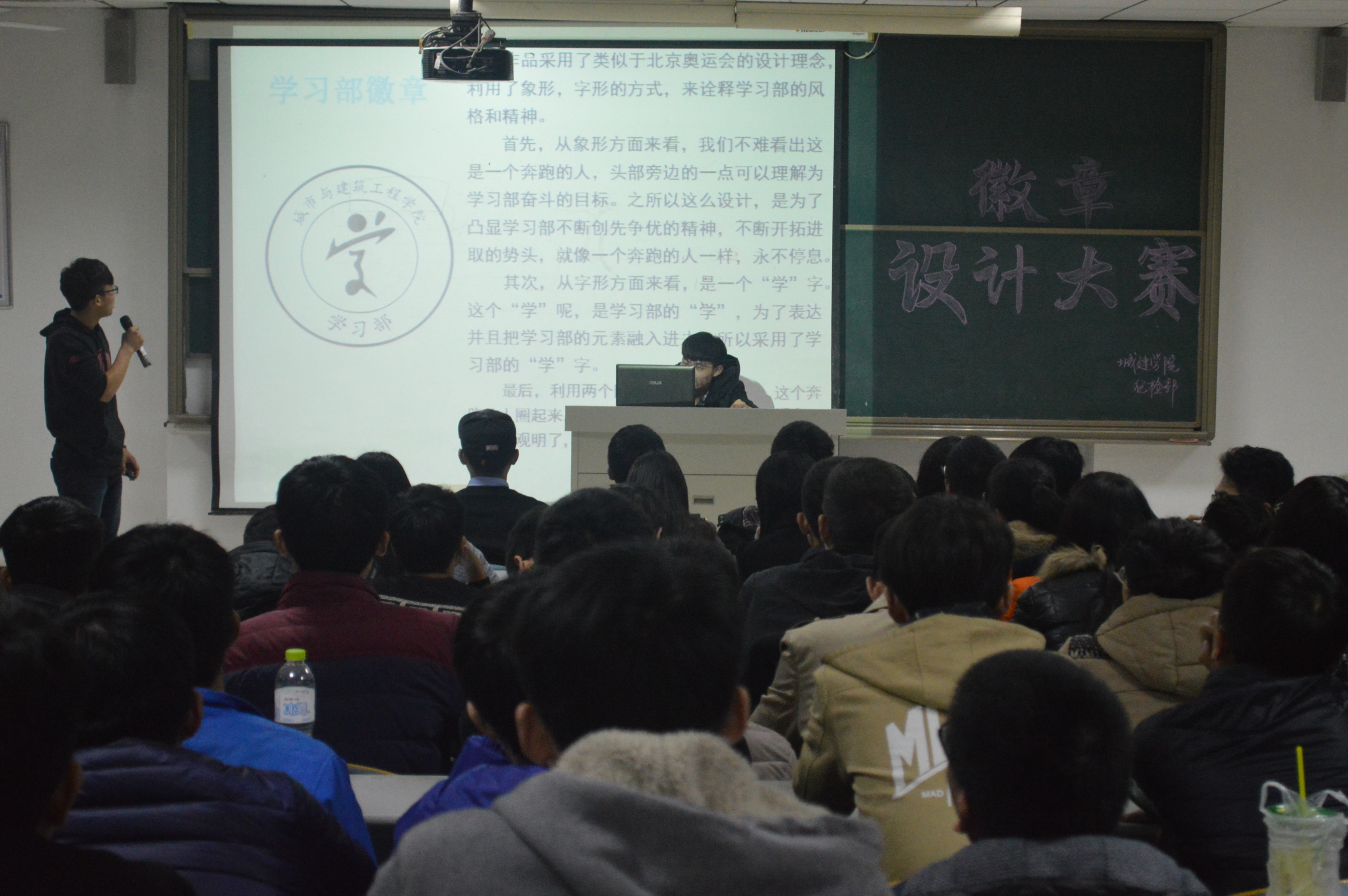 比赛伊始,主持人介绍了本次活动的主题和特色,即“城建与时俱进,设计彰显风采”,同学们充分激发匠心独运的灵感,各个团队利用自己的优势和创新才能来设计独具特色的徽章。各个团队或个人借助精美PPT的形式展示本队为员工会各部或本班设计的徽章,充满激情的在讲台上讲解徽章的设计理念和象征意义。每一个徽章都是设计者汗水与智慧的结晶,更是灵感创新能力的见证。各团队从各部特色出发,设计出了诸多丰富多彩的作品,有的团队用简单的线条和色彩搭配构成了令人眼前一亮的徽章,也有的团队利用专业特点设计出了独具特色的班徽,表达了自己对班级的热爱。经过现场激烈的角逐,纪胜磊团队荣获本次比赛的一等奖,徐彬宇和高雨两个团队获得此次比赛二等奖,更有多个团队获得了三等奖和优秀奖。
