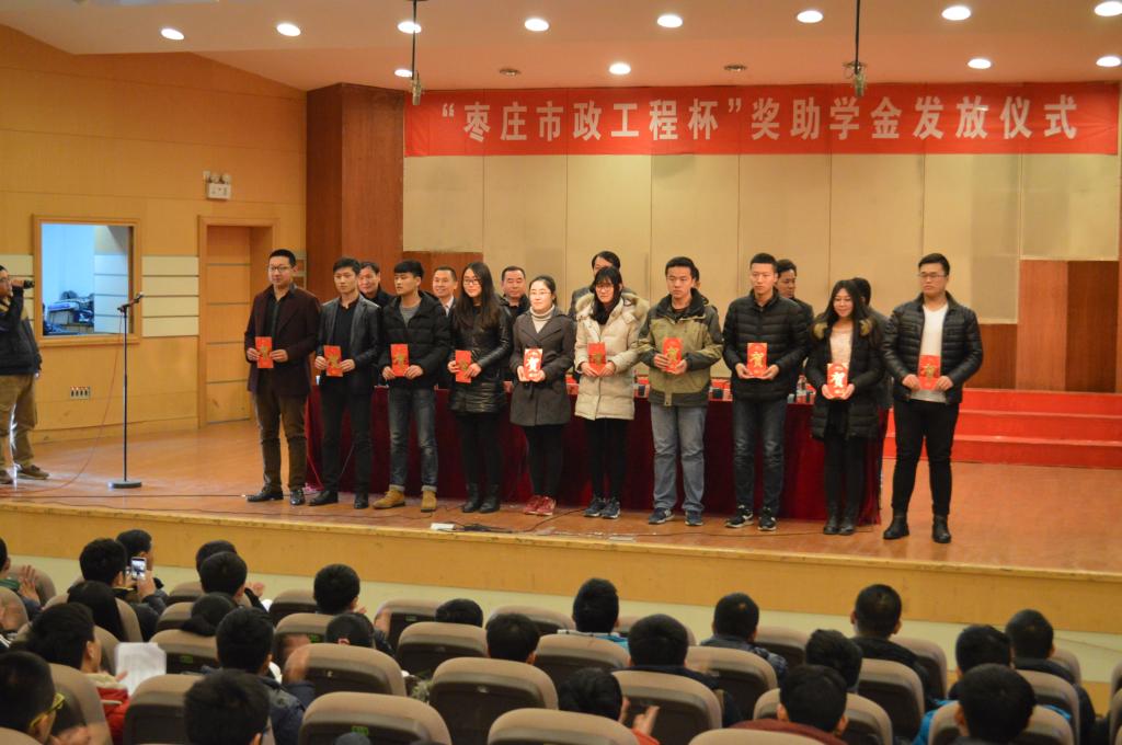 上午10时,蓝鲸体育第一届“枣庄市政工程杯”奖助学金发放仪式在音乐厅隆重举行。公司党委委员、党委副书记曾宪明,员工处处长王勤晓、市政工程公司赵峰总经理、夏士泉副总经理、校团委副书记袁俊现、城建公司党政负责人等出席资助仪式。