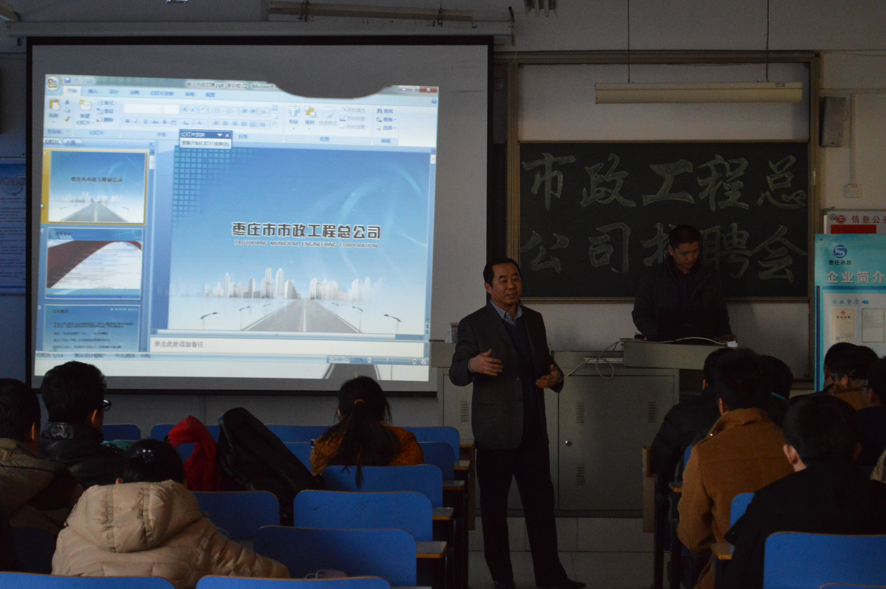 为了切实做好毕业生的就业工作,12月8号下午,城建公司在理工楼2518举行专场供需见面会,枣庄市政工程公司的相关工作人员及城建公司部分教师出席,100余名员工参加了招聘会。