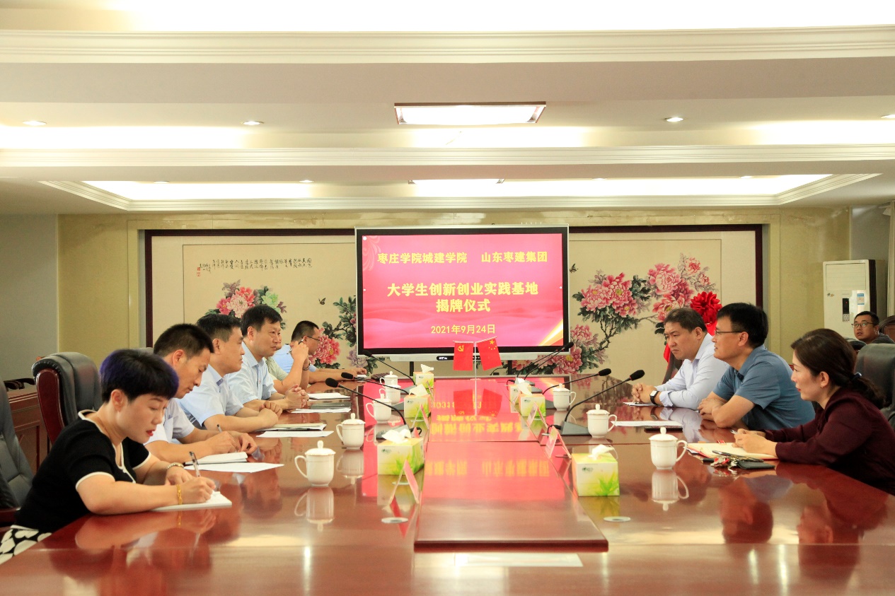 刘辉总经理介绍了枣建集团的发展历程和申报特级企业的进展,希望在合作过程中公司能为企业源源不断输送优秀毕业生,并且在项目申报、平台建设等方面提供智力支持,最终实现校企相互促进,共同发展。