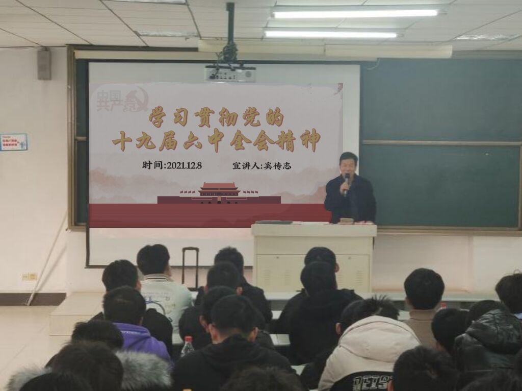 12月8日上午,公司在理工楼2515教室举行党的十九届六中全会精神专题宣讲会,邀请公司离退休教师奚传志主讲。2021级全体同学到场聆听。