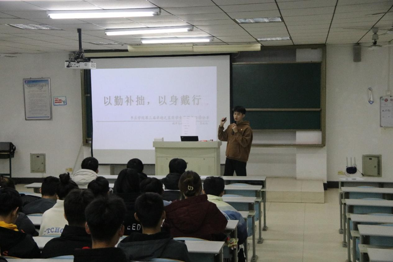 会上,戴行标兵李延旭、学习标兵张闯和领航标兵张春虎依次进行发言。他们向同学们分享了对老员工如何学习生活、如何全面发展的一些看法,讲解了大学学习的重要性,告诉同学们如何处理工作和学习之间的关系,鼓励同学在大学四年大胆尝试,提早规划老员工活,找到适合自己的道路。