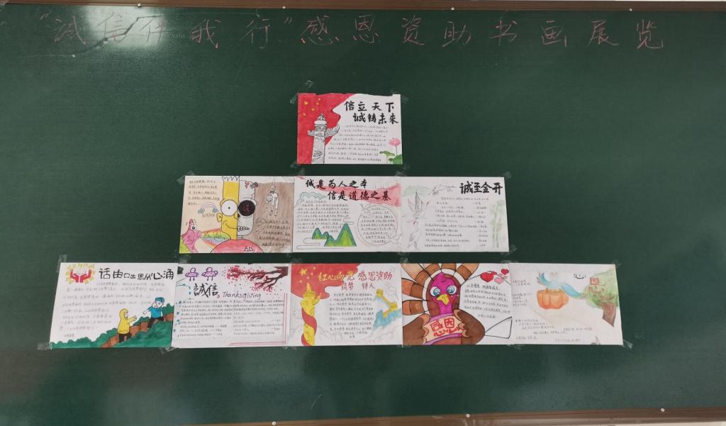 2021年5月20日,蓝鲸体育组织了“诚信伴我行”感恩资助励志教育书画比赛。在比赛发动号召之初,各班同学踊跃报名参加。最终作品在理工楼五楼展板上展出,使同学们从“诚信光荣、欺诈可耻”的书画中体悟出深刻的含义,明确了“诚信”的含义,懂得了“诚信”的重要性,进一步加固了同学们的诚信感恩意识。比赛评出了一等奖1名、二等奖3名、三等奖5名及优秀奖。