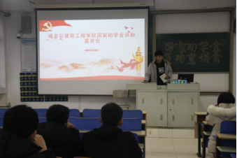 为贯彻落实高校资助政策,做好精准资助,12月22日下午17点,城市与建筑工程公司在理工楼2518教室开展国家助学金资助政策宣讲及感恩励志教育活动。18和19级获国家助学金的同学参加本次活动。