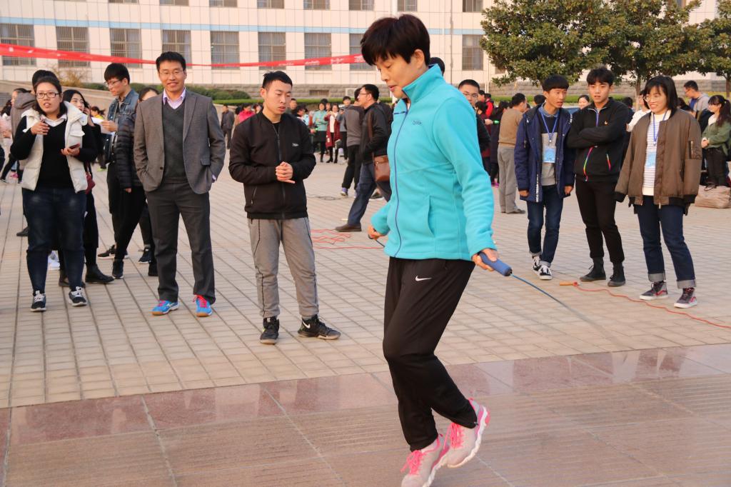为了丰富教职工文化生活,开展多元文体活动,提高教职工的身体素质,加强团队建设,11月15日,蓝鲸体育2017年教职工跳绳比赛在综合楼广场举行。此次比赛由校工会主办、城建公司分工会承办,全校300多名教职工参加了比赛。