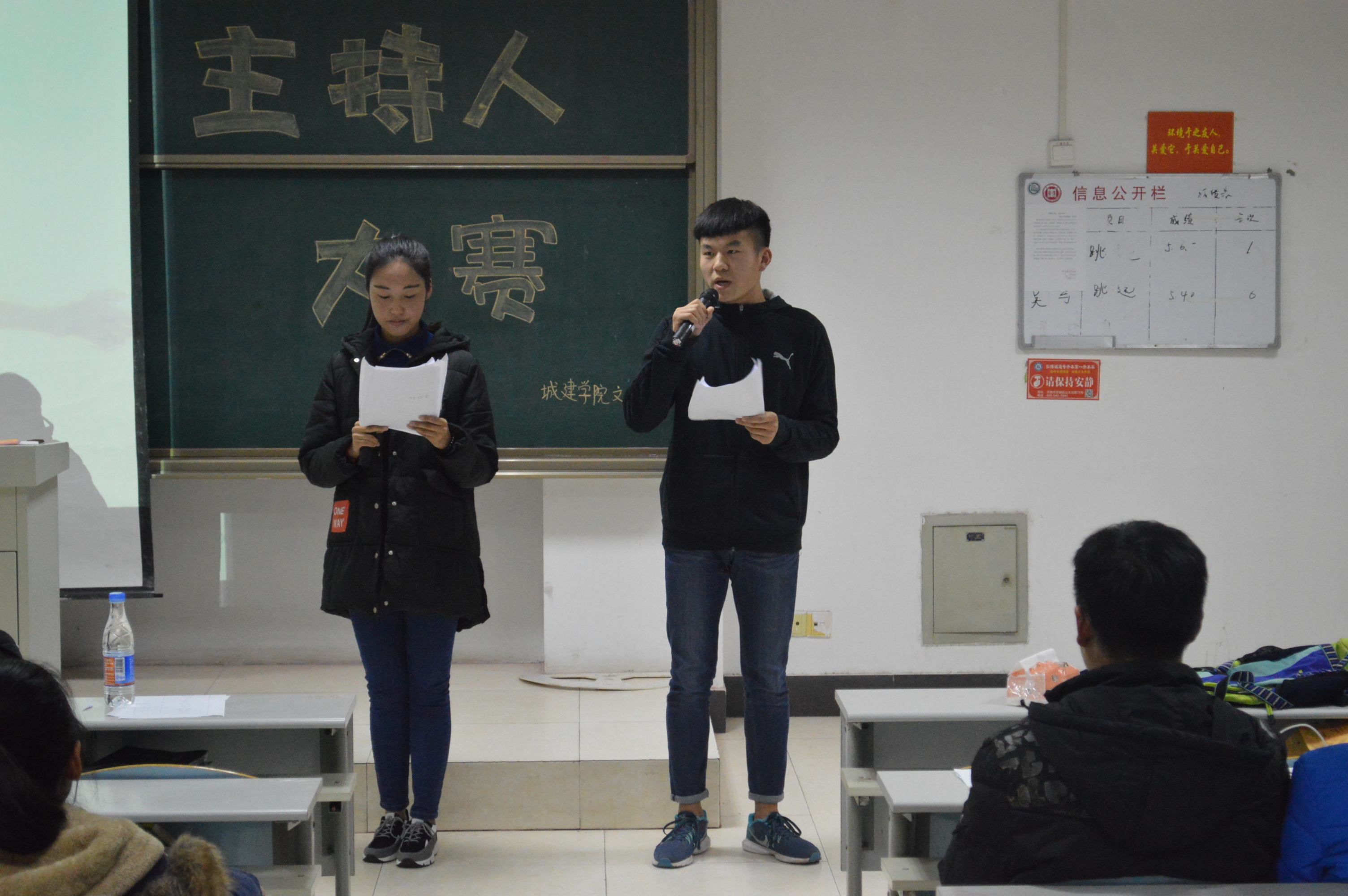 为促进校园文化发展,提高员工的口头表达能力,11月21日晚,蓝鲸体育主持人大赛在理工楼2505成功举办,2016级全体员工参加此次活动。