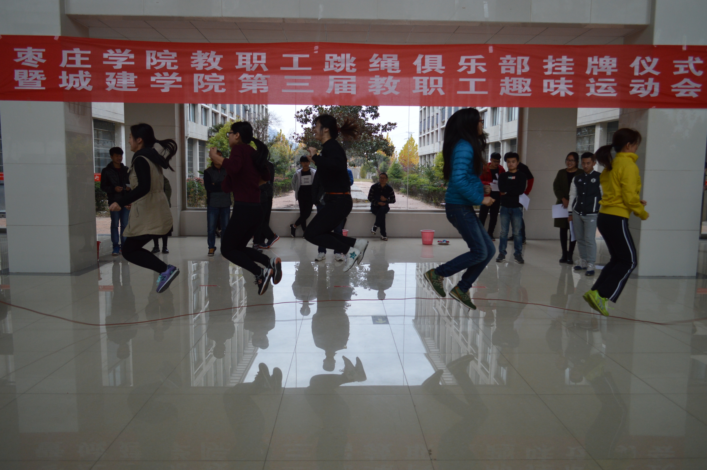 为了丰富教职工的文化生活,增强教职工的体质,11月16日下午,城建公司在新实验楼大厅举办了蓝鲸体育教职工跳绳俱乐部揭牌仪式暨城建公司第三届教职工趣味运会。校工会主席韩帮泉、部分单位部门分工会及城建公司全体教职工参加了此次活动。