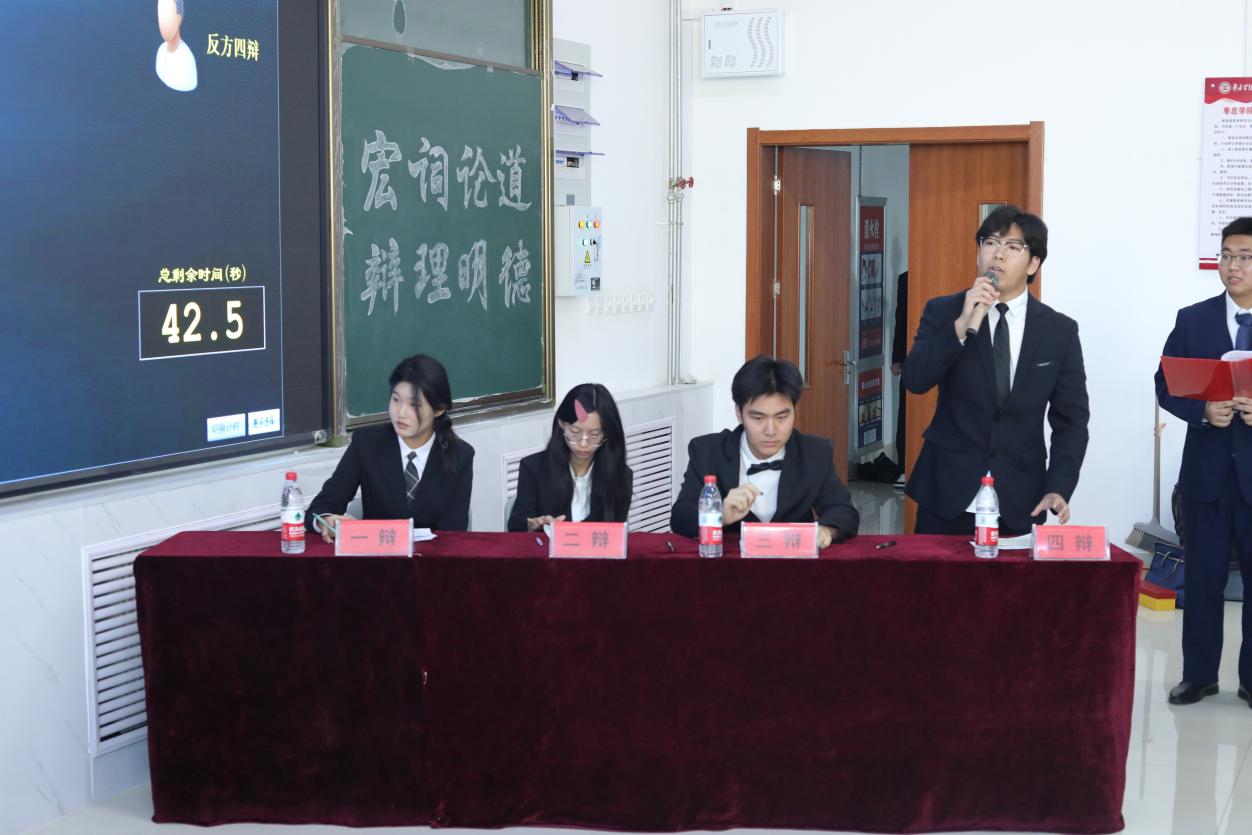 决赛现场围绕“追寻人生价值,当代青年应当去远方还是回家乡”这一话题展开辩论,现场氛围紧张激烈,正反两方正激烈的对峙、争锋,努力把自己的观点证实,搭配完美的团队合作,真正做到了齐心共赢。